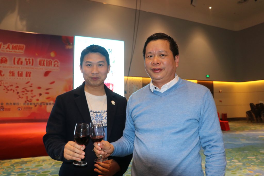 在联谊会现场,思源学校王利波校长与海南省温州商会会长王东云在酒店共同庆祝新年最美的时刻。